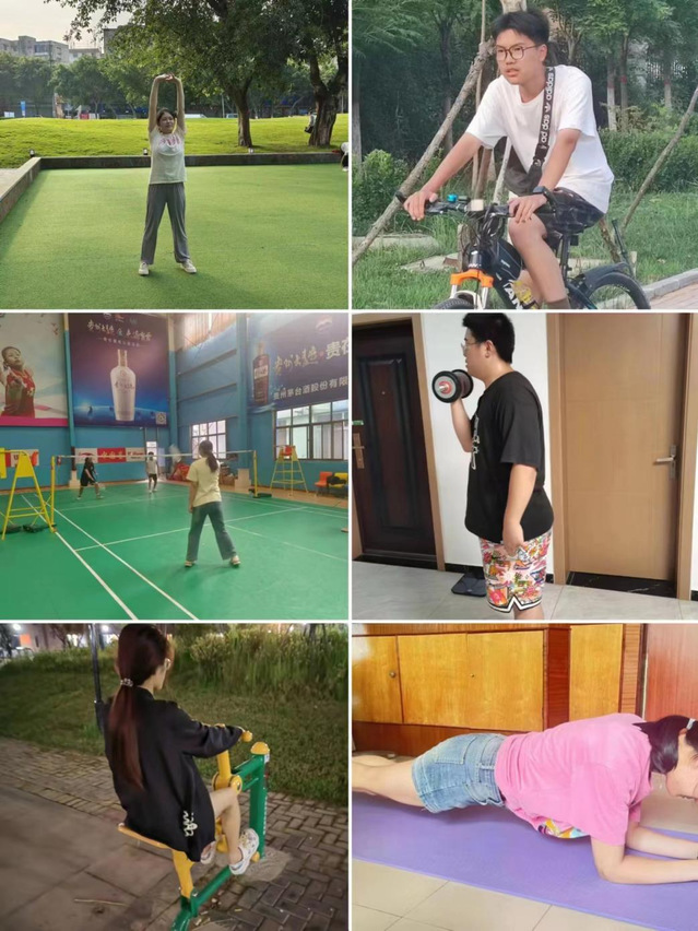 没有“躺平”的青春,只有奔跑的岁月。暑假期间,鼓励学生根据自己的身体条件以及兴趣爱好,通过创建线上打卡微信群,运用KEEP等应用程序记录等,自发开展形式多样的体育活动,如户外跑步、骑行、跳绳、燃脂操等,每天提交个人运动打卡截图,组织监督学生强化运动意识,增强身体素质,树立健康观念,引导学生健康生活、健康运动。