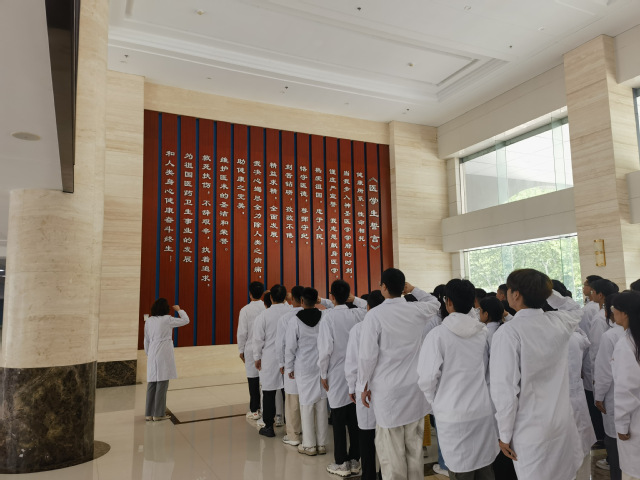 9月24日上午,麻醉学院2025级新生宣誓仪式在临床实践中心一楼隆重举行,全体新生身着白衣列队肃立,在麻醉学院副院长孙丽娜的带领下高举右拳,以铿锵誓言开启医学征途。