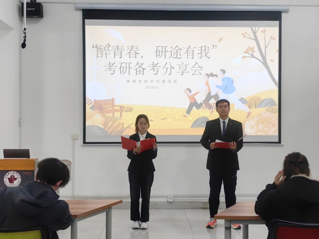 10月25日晚,麻醉学院在“乐道济世”书院举办“醉青春,研途有我”考研备考分享会,激发学子的学习与考研的热情,助力其明确未来努力方向。麻醉学院2023—2025级在校学生积极参加。