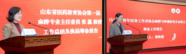 学术报告开始前,参会代表集体观看了张军桥英雄事迹宣传片,并由张军桥的老师和同事对其先进事迹进行了宣讲。会议学术氛围浓厚,专家报告精彩纷呈,引发与会者的热烈讨论与积极互动。山东省内外约300余名专家学者、师生代表参加了本次会议。会议期间还举行了山东省医药教育协会麻醉专业委员会第二届换届选举,山东第二医科大学科研处处长、麻醉学院院长张蕊教授连任主任委员;山东省青年医务工作者协会麻醉与疼痛研究分会成立,麻醉学院梁映霞教授当选为首届主任委员。